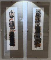 konstruktiven, technischen und organischen Bildmotiven entwickelte. Die vertikale Formstruktur erinnert