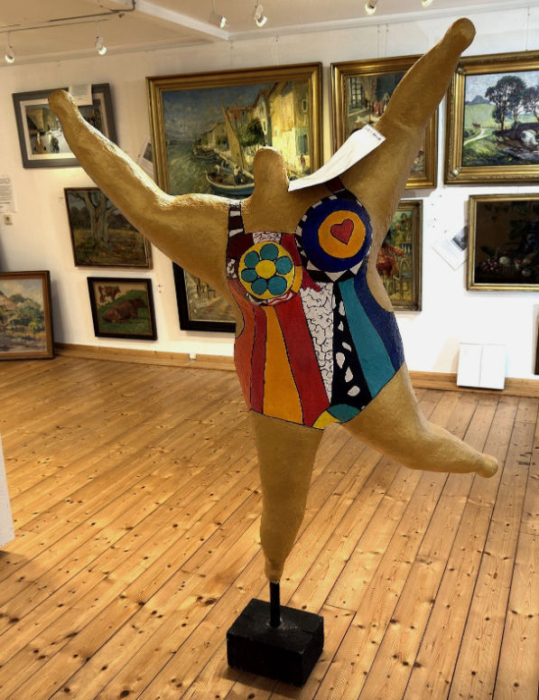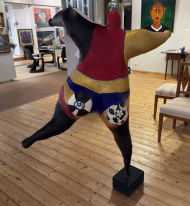 Figur im Stil von Niki de Saint Phalle Künstlerin: Ulla (Signatur, März 2011) Technik & Material: Pappmaschee, farbig bemalt und lackiert Höhe: 148 cm Signatur: „Ulla 3/2011“