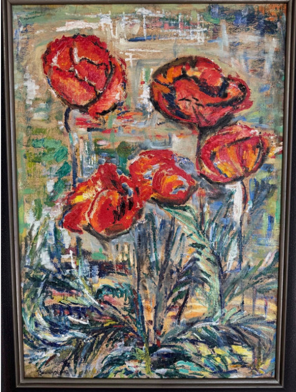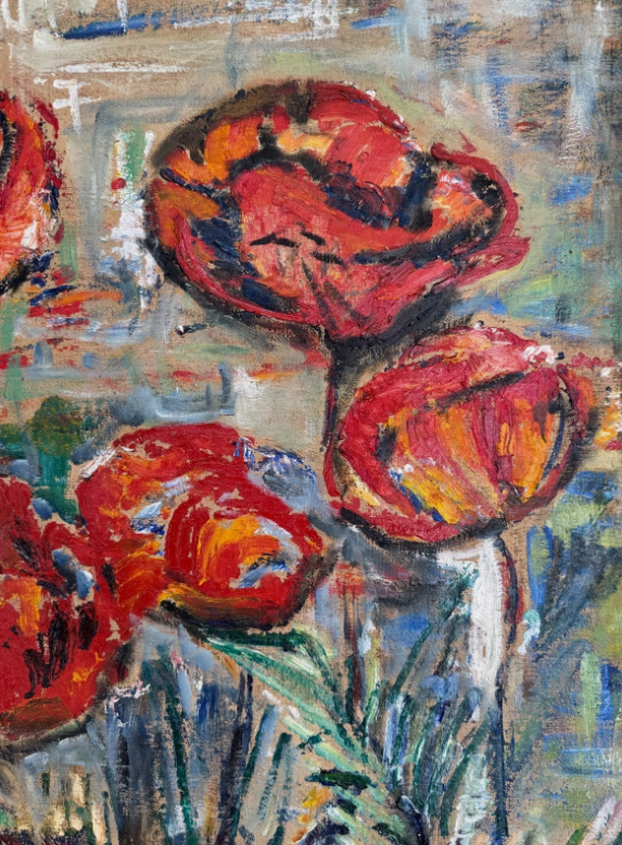 Stanisław Borysowski (1906–1988) Titel: Rote Mohnblumen Technik/Träger: Öl auf Leinwand, stark pastos Maße (Bildmaß): ca. 55 × 78 cm Datierung: um 1950/60 Provenienz: Privatsammlung Rahmung: profilierter Galerierahmen